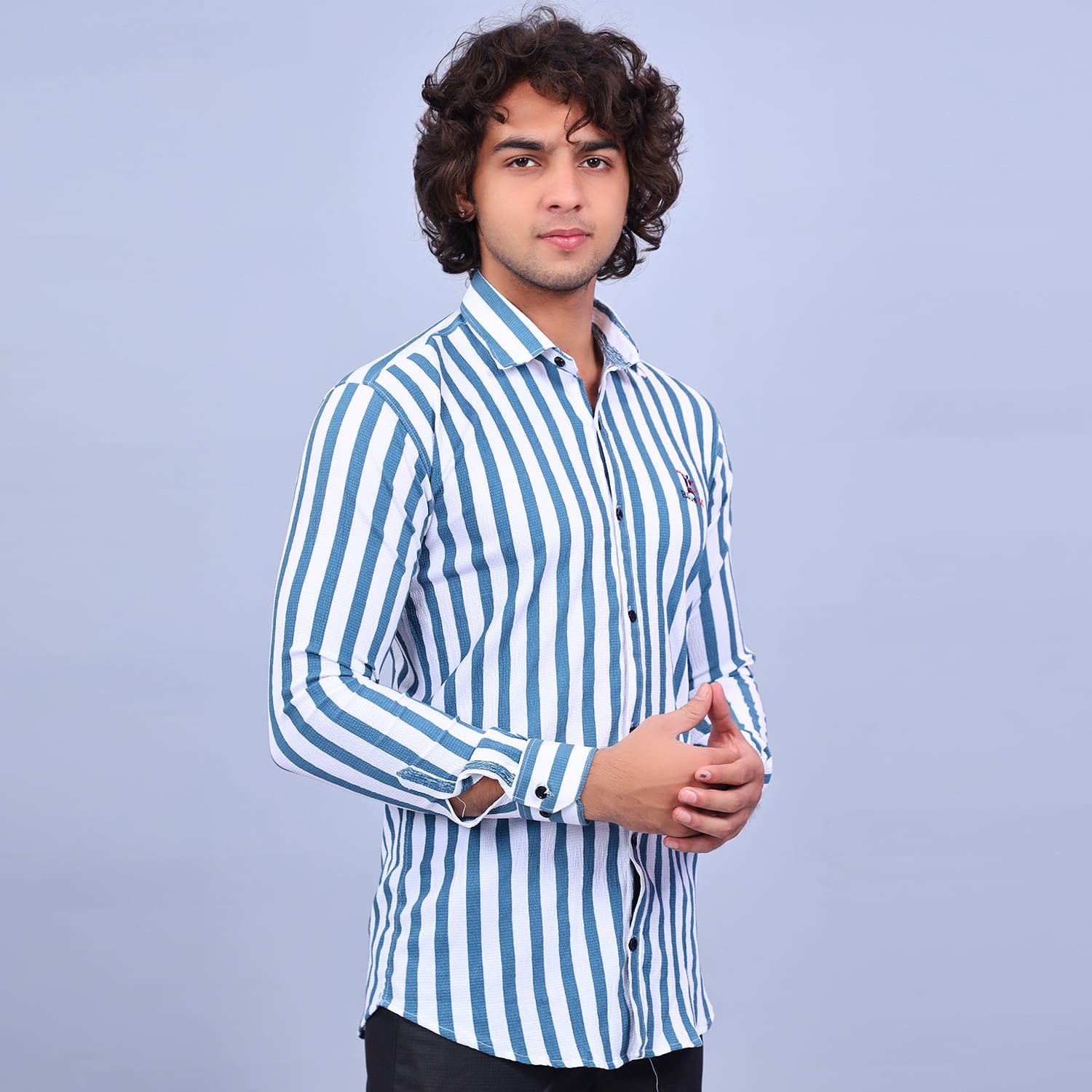 Blue50 Green Strip white shirt With full sleeve